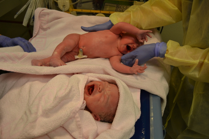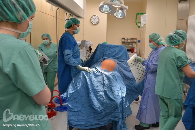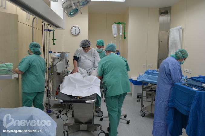 Мой рассказик.Внимание-много текста и фото( если удастся загрузить)!!!Больше всего запомнилось то как из меня в прямом смысле этого слова вырвали мою дочу! Но по порядку.На сроке 37 недель и 4 дня я сдалась в роддом на ПКС (тазовое предлежание первого малыша,сыночка).В роддоме полный бебибум,28 февраля родились 12 деток,роддом переполнен и меня поселили в другое отделение,которое плавно переходит в роддом-гинекологию.Я там мамочка была не одна,со мной были и другие,в палате душ и туалет,с вечера мне медсестра принесла "одёжку" и чулки,сказала всё это на утро одеть,а перед тем сходить в душ и помыться спец.гелем,антибактериальным.Как спала или не спала в ту ночь-не помню,помню что кряхтела на всю палату,когда переворачивалась или вставала в туалет,утром пошла мыться,вся изматерилась-душевая кабина маленькая и вход узкий,ни боком,ни передом залезть не могу,всё пузо себе исцарапала,ну кое как я там помылась,оделась и половину восьмого утра пришла моя акушерка и забрала меня вместе с койкой в родзал,операция должна была начаться в 8-9 утра,туда же приехали мои мама,доча и муж.Акушерка Надя вставила мне катетер в мочевой и мы стали ждать,я лежу,они вопкруг меня топчутся прямо в родзале,ждём когда придёт бригада в операционную,но никого нет,позвонили Наде,сказали,что снизу идёт экстренная операция и анестезиолог там дежурный,придётся подождать,потом все стали потихоньку подтягиваться,со мной в оперблок пошла Надя и доча,муж и мама остались ждать за дверями,когда им будут выносить по одному))) Наркоз я выбрала спинальный,чтобы видеть деток и слышать их первый крик,в итоге деток я не видела,а первый крик,слышала только писк сына и как чихнула доча,и их быстро уносили,работали все быстро и слаженно,в другой команте детей ждали детские врачи,которые тут же их осматривали и ставили оценку по Апгар,ну это я забежала вперёд.....Завезли меня,переложили на операционный стол,доча стоит и стенки в моих ногах с фотиком в полном обмундировании и маске,как потом сказала-мама,как хорошо,что я была в маске,никто не видел как я стояла с полностью открытым ртом!)))) Хочет учиться на медика,бредит всем таким.Посадили меня на этом столе и сказали согнуть спину,так чтобы плечами до коленей достать,вот я так и сидела,тяжко было-жуть,доча под рёбра залезла,до сих пор рёбра болят,я уже сижу так не могу,а он сказал мне не шевелиться,ну а я то послушная,сижу,терплю,дышать уже не могу,тыкал пальцами там кого-то,в итоге цак-и в правую ногу стрельнуло,ну я так маленько вздрогнула,потом доктор сказал быстро ложиться,попу пониже спустить,а у меня там катетер-боязно...ну в общем пока я ложилась по ногам пошло такое приятное тепло,в ОП был такой дубак,у меня ноги замёрзли,а тут такая приятная нега по ногам,легла я,врачи там копошаться,одну ногу мне на подставку закинули,потом вторую,я ещё подумала:"Оп-па,а там доча стоит!!!",поставили ширму,анестезиолог стал меня проверять,брызнет из спрея -холодно или тепло? Везде было тепло-значит всё занемело,можно начинать.Спросили у меня имена малышей,я сказала.Пришла врач,молодая женщина турчанка,за ширму ко мне заглянула,поздоровалась,я её попросила красивый разрез,она сказала-потом спасибо скажете,сделаю на совесть.Тишина,работают все в тишине,каждый знает своё дело,если и говорят то тихо,чтобы я не услышала,ато мало ли чего-заволнуюсь.Операция на