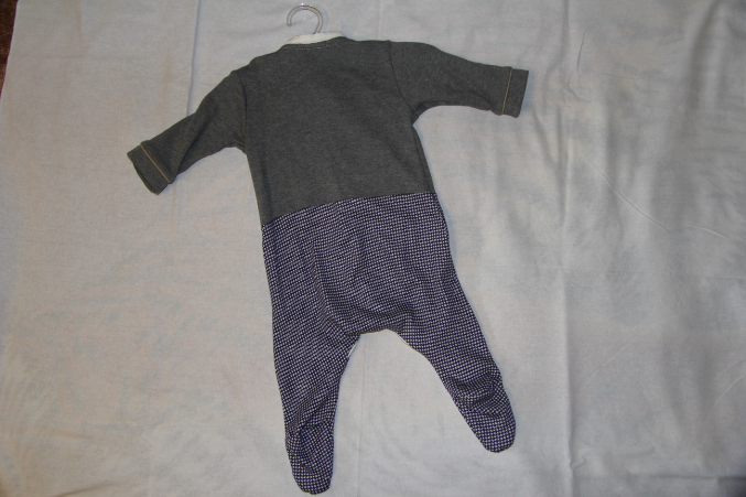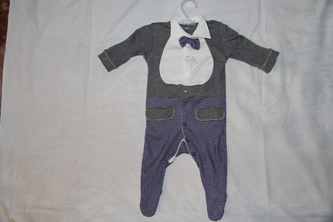 Трикотажный комбинезон с имитацией пиджака и рубашки с манишкой и смокинговым воротником.