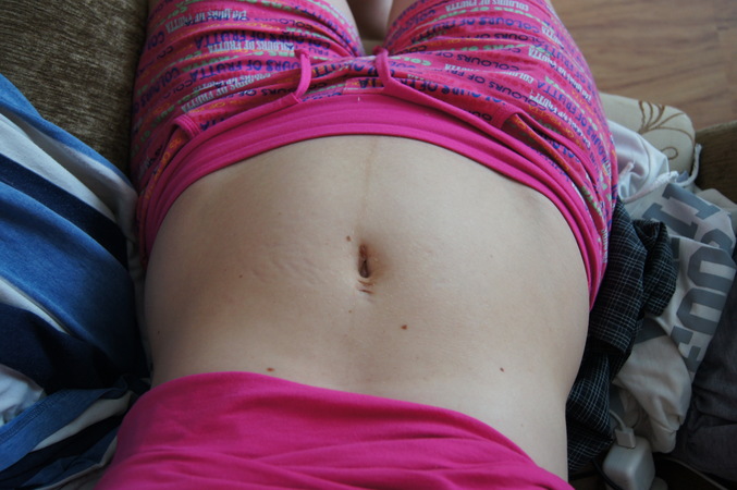 ались, слева от пупа. ну и пуп очень вытянулся и место для пирсинга стало страшным ((((