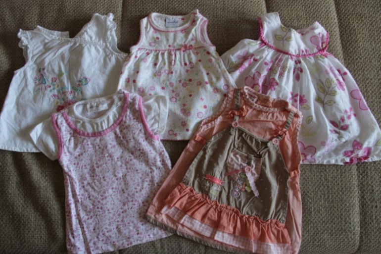 вещи 1200 получаются + 300 руб курточка - 1500 за все. куртка до 3-4 мес. осень-весна. гдето до 62 см.....1. платья 56-62 см от 0 до 3 мес. 2. комбезики тоже от 0 до 3 мес 56-62 см. 3. платья примерно все до 3-4 мес. 4. розовое от 0 до 3 мес. белые где то 62 см.....