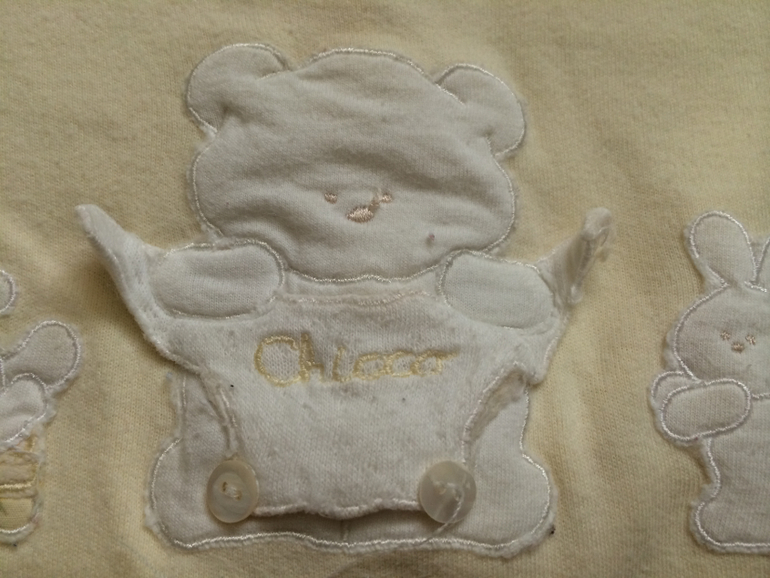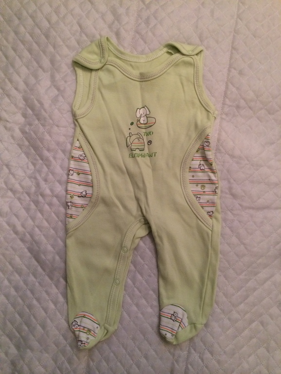 19. Слип Чикко. р. 56/3м. есть нюансы: потрепалась немного аппликация, побежал трикотаж возле кнопки (можно подшить). цена 50 руб.