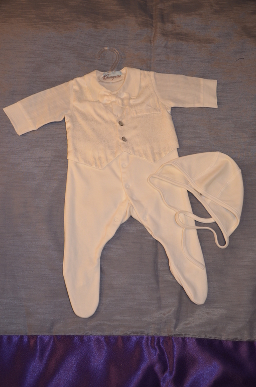 1.комплект на выписку Choupette с декоративным шелковым жилетом и бабочкой. р56 (до 62 точно). Одет 1 раз на выписку, цена 600 руб