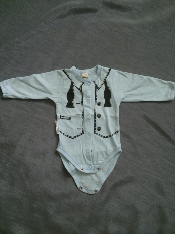 31. Боди Lucky child. Есть небольшие пятнышки на рукавах заметные не при каждом свете (сфоткать не получилось). р. 56-62. цена 50 руб.