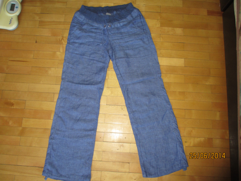 Удобные и практичные брюки из льна. С заниженной линией талии, с широким притачным поясом из вискозы на мягкой эластичной резинке. Они удобны тем, что подходят с самого начала беременности. С увеличением срока беременности, нижняя передняя часть пояса бережно поддерживает снизу растущий животик. Брюки легкие, прямые с карманами. Хорошо сочетаются с любимыми блузами и топами. Можно носить и после родов.