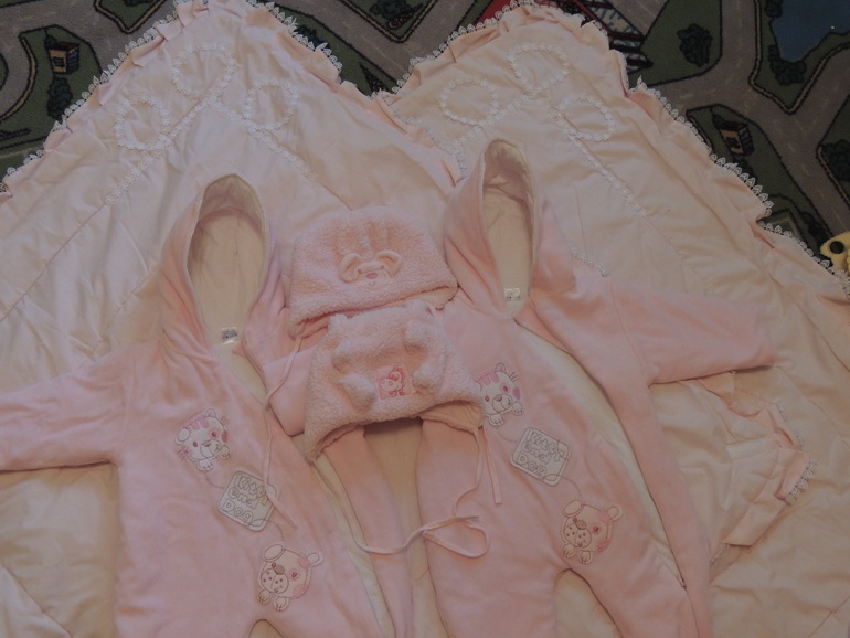 Наша барахолка.Продам два нежно-розовых одеяла, к ним два велюровых утепленных комбинезона р.62 и две шапки. Все в тон. Оч красивые мы в этом выписывались, одеялами можно потом укрываться. За все 1000р, можно и одному комплекту. Возможен торг и почта.