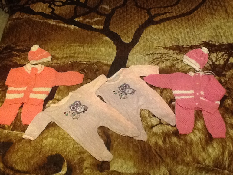 Одёжка замечательная, но у нас не пошли кофточки и штанишки. Носочки нереально на эти пяточки нацепть-драма. А царапки и варежечки стаскивают только так. Так что самое удобное-слипы уже с варежечками. Жалею, что всю одежду не взяли такую. Распашонки, ползунки и боди лежат выстиранные грустные и ненужные.