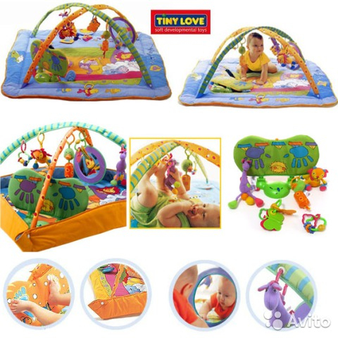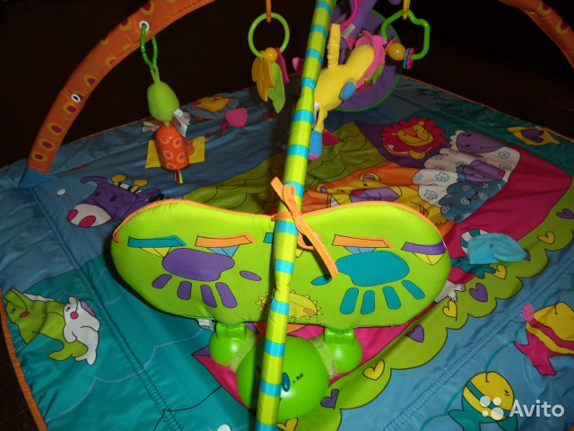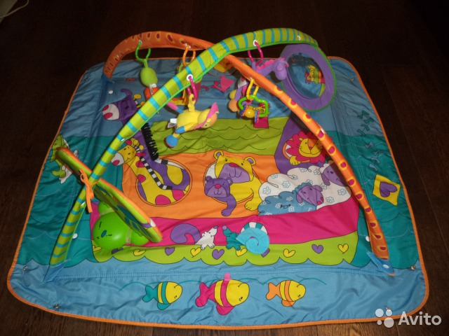 Размер 102*110. Состояние очень хорошее, б/у мало, сохранена оригинальная упаковка. Все игрушки, колечки, зеркало и музыкальная панель в наличии и работает. Играет мелодия моцарта и звуки животных, малыш может стучать ножками и ручками. Здесь есть вшитые в коврик, шуршалки- пищалки. Коврик утепленный, можно ставить на пол. Коврик и все игрушки постираны детским порошком амвей и ждут нового владельца.