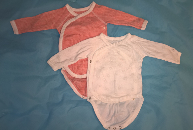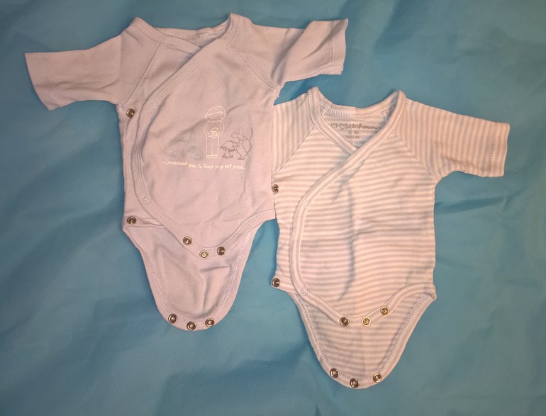 7. kitchoun 2 шт. боди с коротким рукавом и запахом. размер 0-1 мес. обе за 150 руб.
