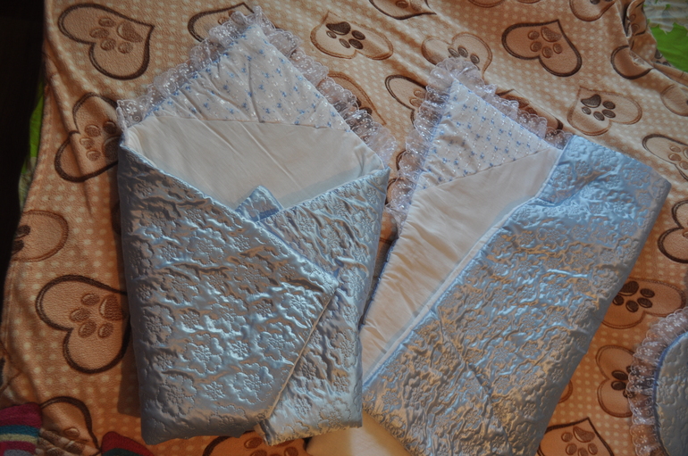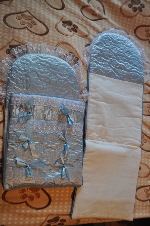 1. Конверты на выписку, очень теплые, Комплект состоит из одеяла и конверта. Цена одного 1000 руб.