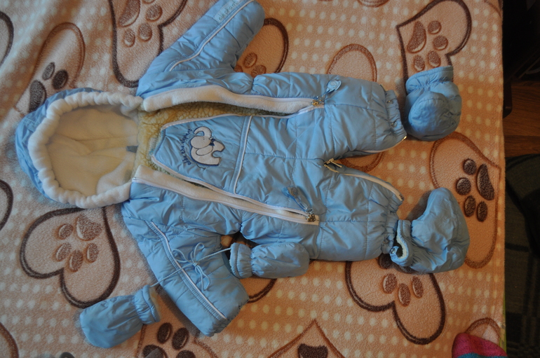 2. Комбинезоны зимние 62 размер. Носили их с рождения, теплые на овчине. У меня их 2 (второй оказался в другом мешке, по запросу достану нафоткаю). цена одного 800 руб.