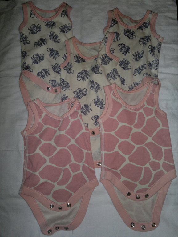 1. 3 боди с коротким рукавом - два со слониками, один пятнистый - 150 руб