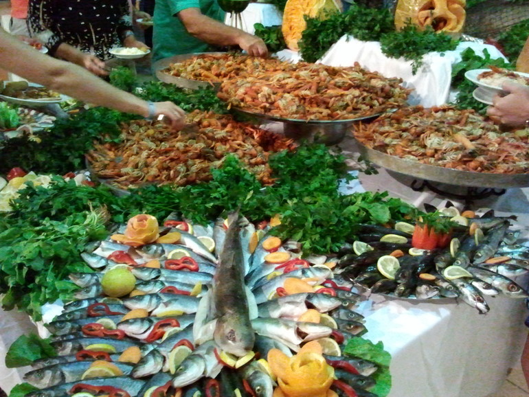 Ну и, конечно же, не могу не выложить несколько фотографий шведского стола. Это настоящие шедевры кулинарии. Даже не знала, то ли это есть, то ли фотографировать…