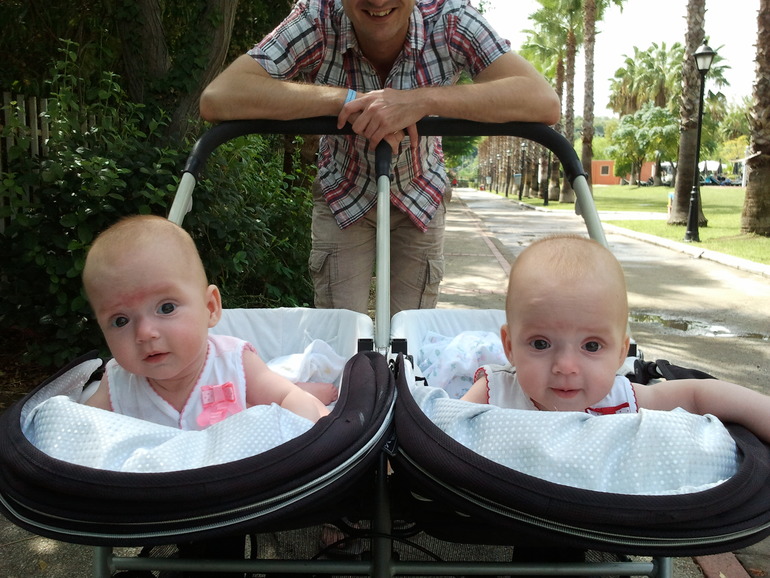 Итак! Что мы взяли с собой. В первую очередь это коляска, без нее никуда. Сомнений, что ее надо брать не было. Сомневались пропустят ли с ней до трапа самолета или заставят сдать в багаж, так как она у нас не стандартная, а двойная. Но брать однозначно, конечно; Детская смесь, мы взяли на все 14 дней, но кушать стали видимо детки побольше и пришлось там еще докупать, хорошо еще она подошла! Лучше берите с запасом, чтоб не рисковать; Подгузники, мы взяли их на несколько дней. Если брать на все 14 дней, то в нашем случае с двойней, нужен отдельный чемодан для них)) в общем подгузники мы там докупали, тоже все замечательно подошло, перешли даже с двойки на тройку; Мы купили два рюкзака для переноски детей, это была моя перестраховка, на случай если с коляской мы где то не сможем пройти, как оказалось, они были лишними, мы ими практически не пользовались и пролежали они без дела; Непромокаемые пеленки, взяли несколько штук, там докупали; Обычные ситцевые пеленки, взяли 12 штук; легкие, летние бодики и песочники, хватило бы штук 6, так как дети часто были просто в подгузниках; теплые комбезики, они нам пригодились только в дороге до аэропорта; шесть бутылочек для кормления, чтоб хватило чистых на дорогу (детки у нас едят каждые три часа) и стерилизатор, у нас это пароварка)). Вроде ничего не забыла) аа, еще детские ножнички, крем, ватные диски, ватные палочки, в общем те мелочи, которыми мы пользуемся. Из лекарств взяли детское жаропонижающее, микролакс на случай, если вдруг возникнут проблемы со стулом и градусник. В итоге получился у нас один чемодан, два рюкзака за спиной и коляска с детьми.