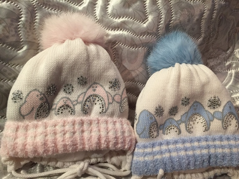 Только розовая осталась((, есть шапочки рейма, с ушками, мы носили сразу, вниз чепчик, а осенью уже без. Они очень хорошо сидят. Голубая и сиреневая.