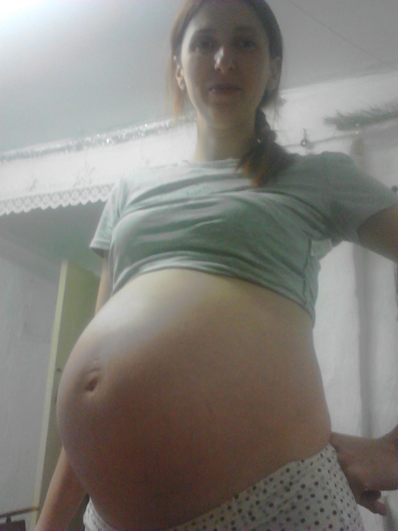 Муж все иногда говорил, что животик действительно большой становится, да и врач сказала, что растет заметно. А я фотографирую в профиль и он очень маленьким кажется. Муж для сравнения после моего фото сам сфотографировал))).