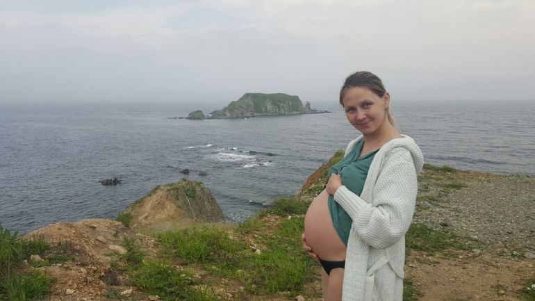 Как писала ранее нам уже 27 с хвостиком... вот такой у нас пуз сейчас) вот такой муж) и вот такая красота в Приморском крае на черных песках)))
