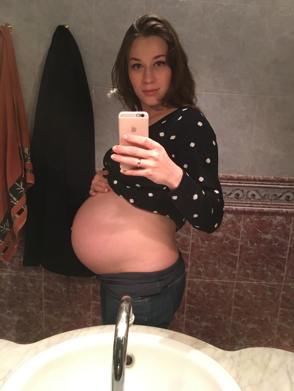 Хорошенький пуз какой! Пиночки это да...все внутренние органы в страхе жмутся по углам:))) Моим не нравится когда сижу на жестком или лежу на спине...А стоять или ходить без бандажа я просто не могу уже, такое ощущение что пузо оторвется!