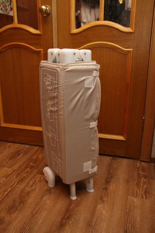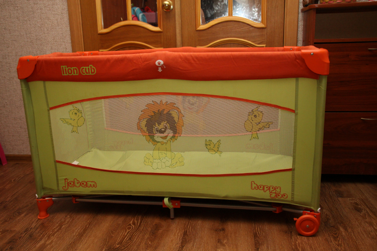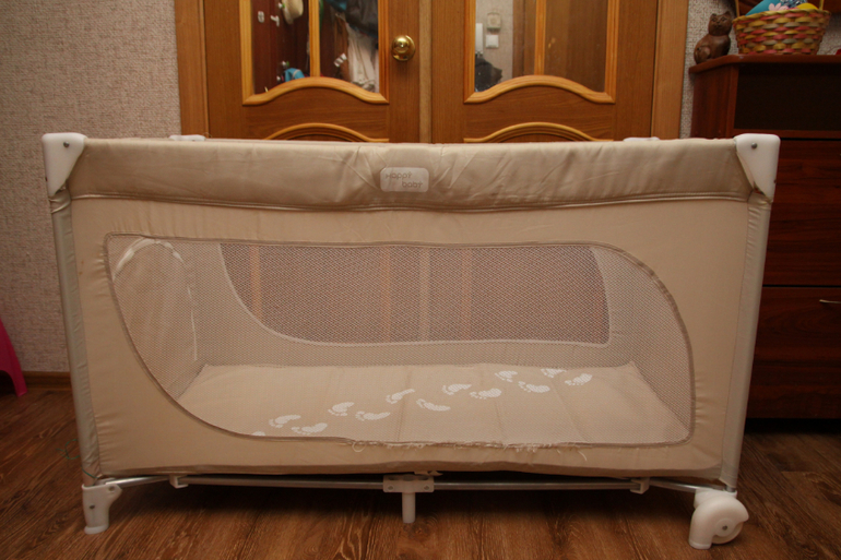 - Колесики с фиксаторами позволят легко передвинуть манеж-кровать по комнате