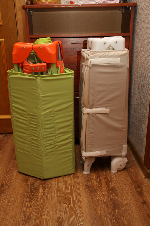 Удобные, компактные, легко разбираются и собираются, можно катить на колесиках за ручку за собой. Дно жесткое, бортики высокие.. и плюсы еще можно писать долго. Довольны покупкой на все 100.