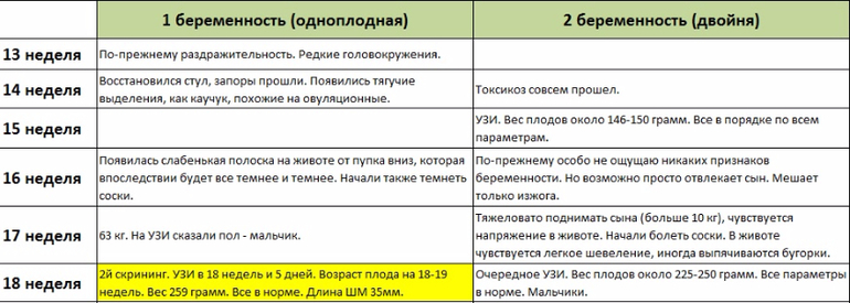 Кстати посмотрела таблички в интернете "вес плода по неделям". Обычно в 18 недель 220 грамм верхняя граница. Может ли это означать, что мои ребятки будут крупными для двойни? Первый сын родился в итоге 4950г.