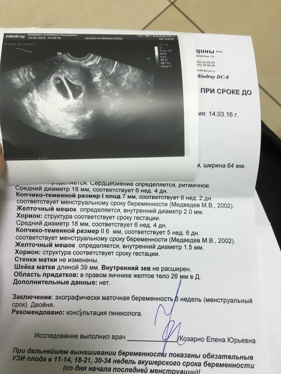 У меня было так же почти, были выделения бежевокоричневые,я в 5 недель пришла на УЗИ сказали одно пя все в порядке с ним ,а вот рядом либо отслойка либо второе пя???... И поставила под вопррсом . выписали свечи таблетки для сохранения, прошла неделя снова появились выделения с каплями крови,я Беном в ЖК там направления на госпитализации дали и при приёме уже в больницу установили на осмотре и УЗИ двойню и срок 7-8 недель и у обоих бьються сердца! Сейчас жду первого скрининга через неделю....