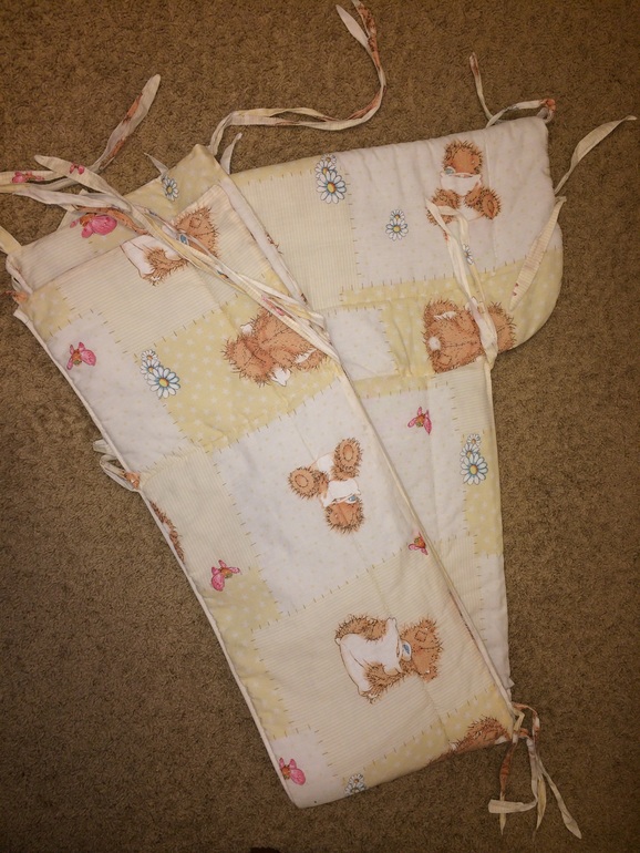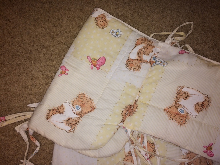 Отдам бортики для кровати. Состояние хорошее, за исключением завязок. Ребёнок их постоянно отрывал, поэтому они много раз были зашиты и пришиты)))