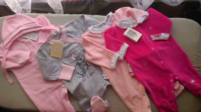 Ну и мы во всю готовимся к встрече. В роддом почти всё готово, осталось докупить чулки на роды, дезодорант без запаха ну и сложить сумки. Пелёнки, клеёнки постираны и поглажены, убраны в пакет и в шкаф. Есть не много вещичек уже (покажу некоторую красоту)