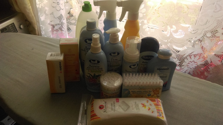 куплена одна кроватка-люлька с бортиками и матрасиком к ней, купила себе фитбол и подушку для кормления двойни. Разных подгузов набрала по акциям, будем пробовать. И всякие нужные штуки для мытья, чистки, стирки, сосочки бутылочки в общем мелочёвку и нужности.