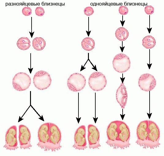 Ого,даже так бывает. Я почему- то думала,что яйцеклетка делится,но остаётся одна,а в ней 2 ребеночка( два крайних рисунка справа). Ну тогда у вас или жт не увидели или все же тот третий справа рисунок ваш случай.