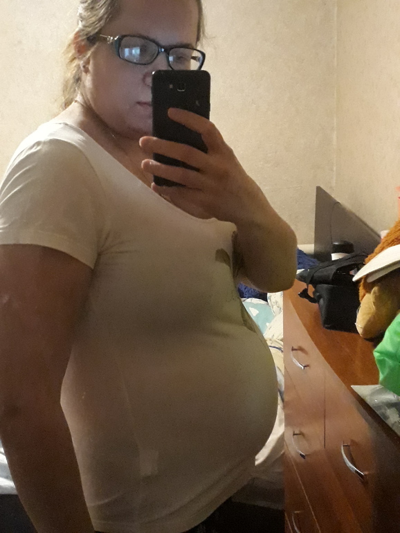 Живот огромный, тяжёлый, набрала уже 18 кг, практически все время лежу, ну и ладно, главное сейчас доносить и родить здоровых малышей!!!