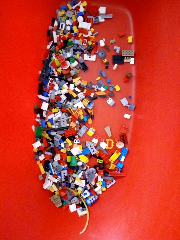 Тут остались самые мелкие детали из мешка. Хранятся в детской ванночке 😅.