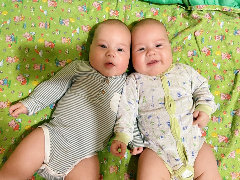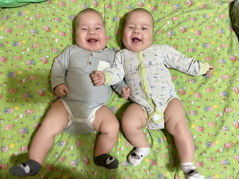 Как летит время !!! А малыши ещё больше позитивчики ) А с какого возраста они друг на друга реагируют так явно? Мои спят раздельно и похоже , только завидуют , что кто-то из них на маме лежит , пока другой рядом. Даже не представляю как их в таком возрасте одновременно взять