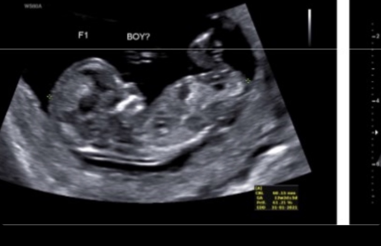 По старшему срок 13+1. Но вот если в пятницу нам предположил супер спец двух девочек, сегодня предполагают уже мальчика и девочку.