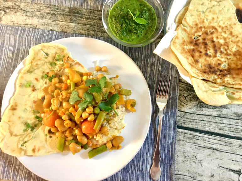 Потому что можно себе иногда и такое позволить) Наан, бобовый карри,зелёный чатни.