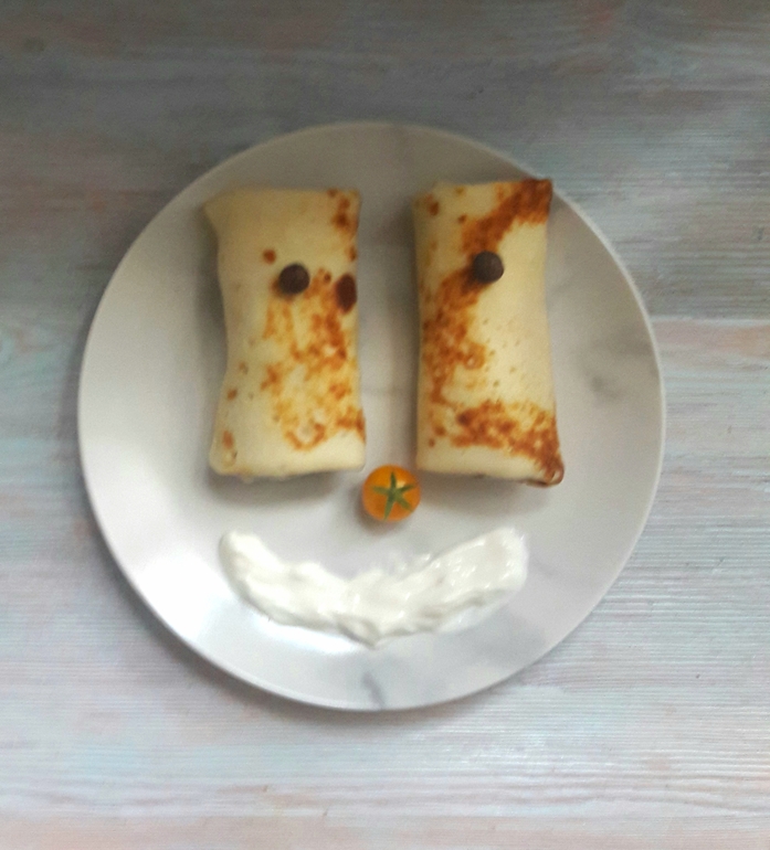 Или блины с яблоком. Целого яблока хватит на начинку 4х блинов.