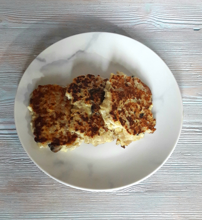 У вас остается рис? У меня обычно нет, но я специально делаю ризотто в два раза больше, чтобы сделать оладьи.