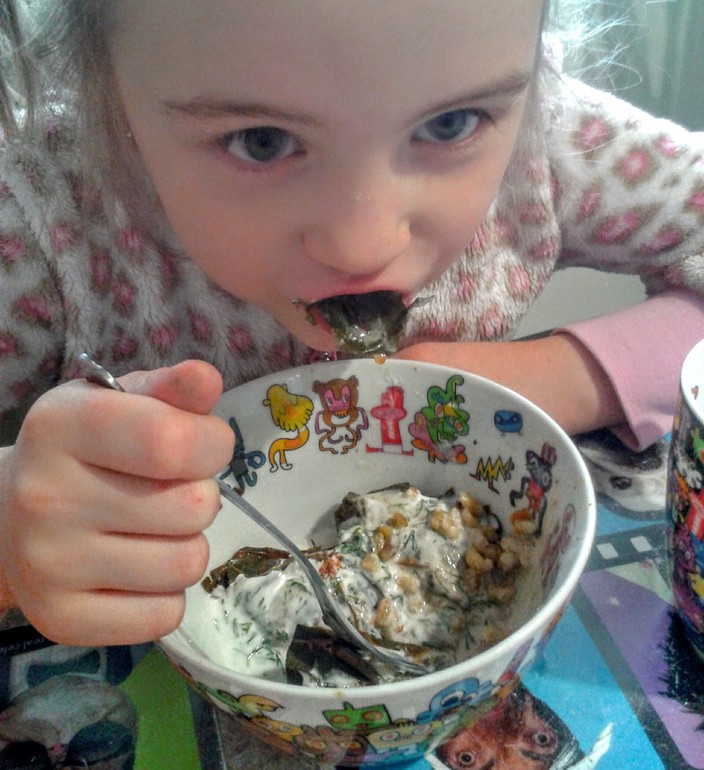 Долма: у меня внутри вареный ячмень с пассированной морковкой.