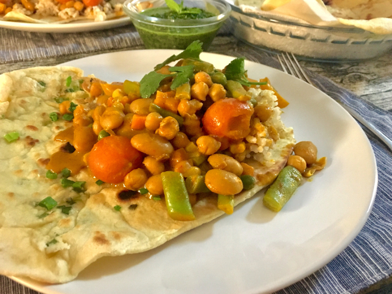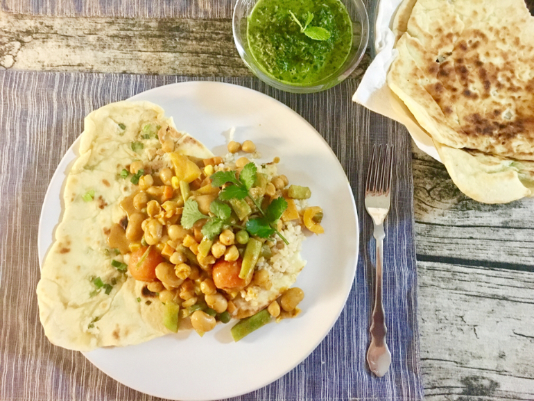 Блины/оладьи/лепешки/хлебПотому что можно себе иногда и такое позволить) Наан, бобовый карри,зелёный чатни.