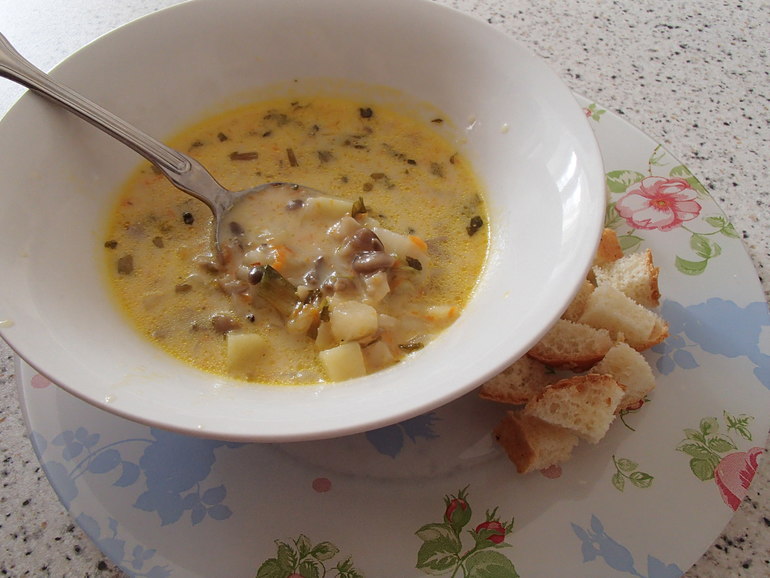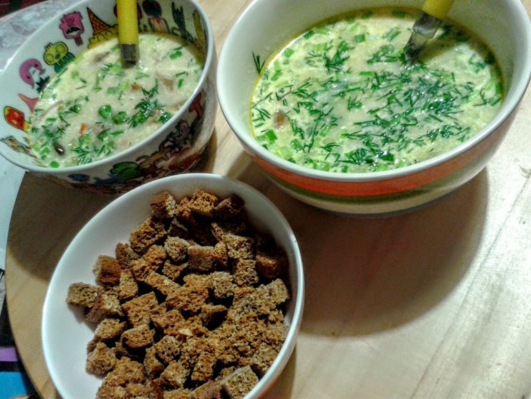 а у меня отек Квинке на грибы, но сырный суп мы тоже любим - картошка, лук, морковка, луковый сырок для супа и форель!😊