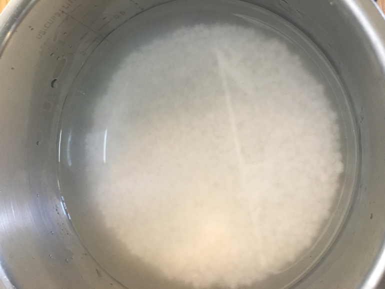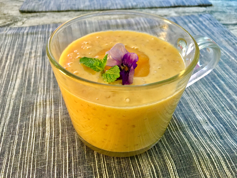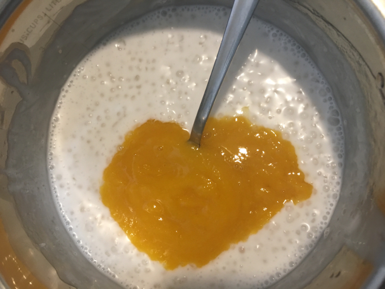 снять с огня , накрыть крышкой и дать ещё постоять минут 15-20, пока не станет окончательно прозрачной. Промыть в чистой воде (я делаю в сите с мелкими дырочками), чтобы убрать излишки крахмала. Добавить кокосовое молоко и манго.