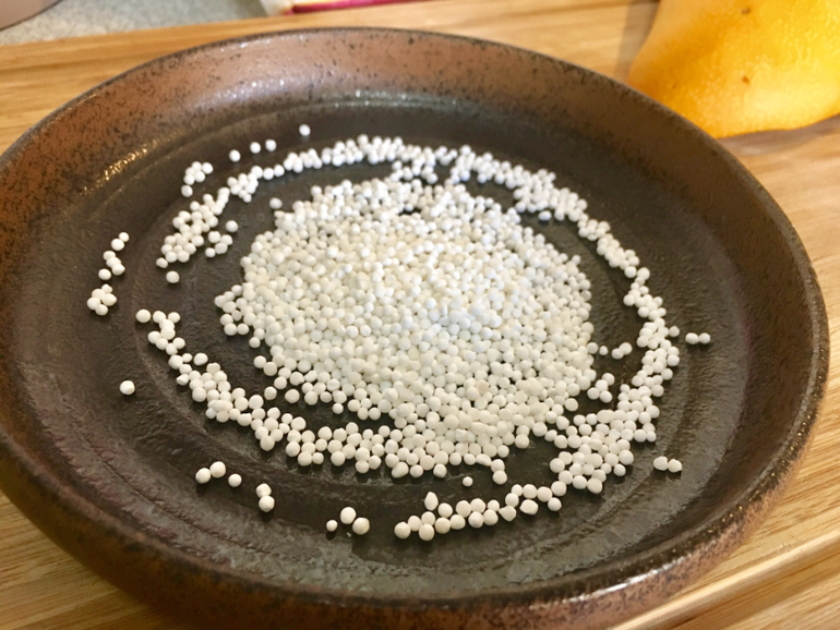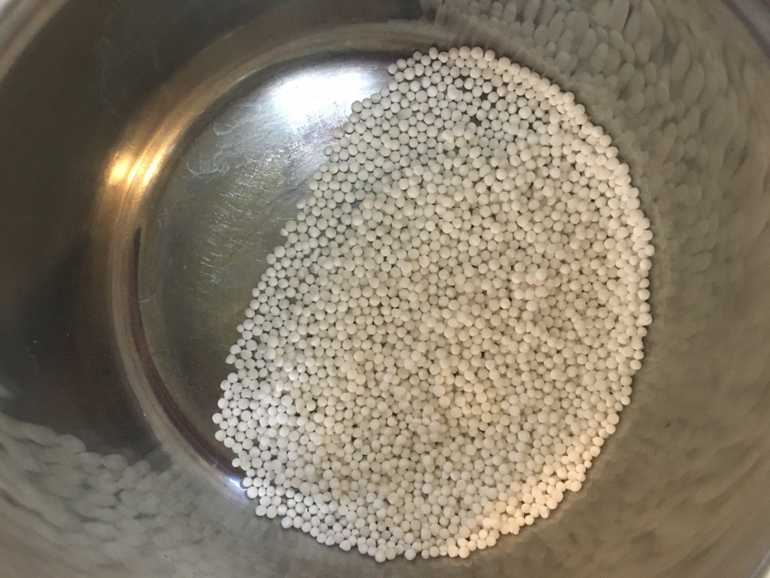 Крахмальные шарики, как маленькие кусочки мягкого желе. Только безвкусные. Вкус придаёт то/с чем/ в чем эти шарики были приготовлены. Интересно.