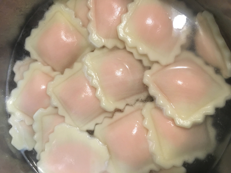5. В кипящую воду равиольки, как всплывут, 2 минуты и вытаскиваем.
