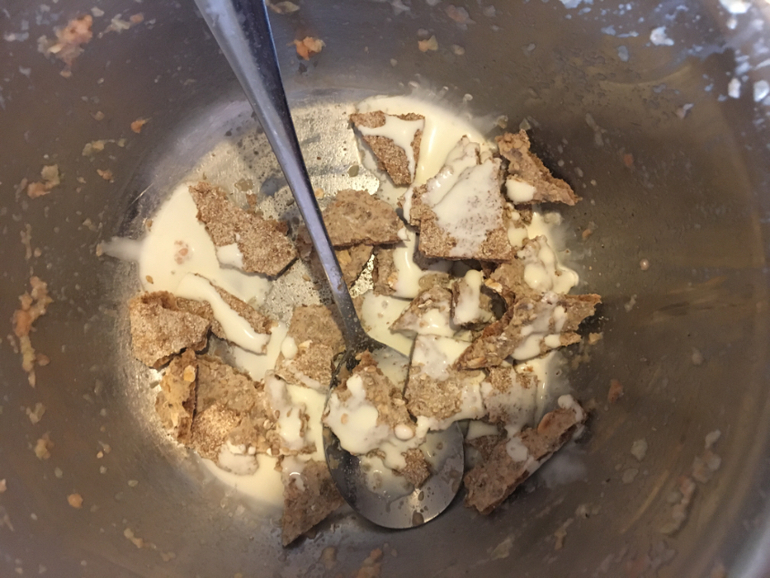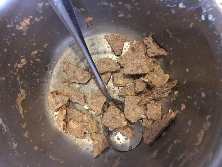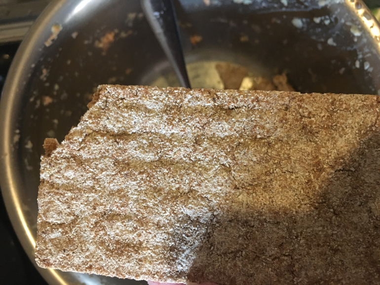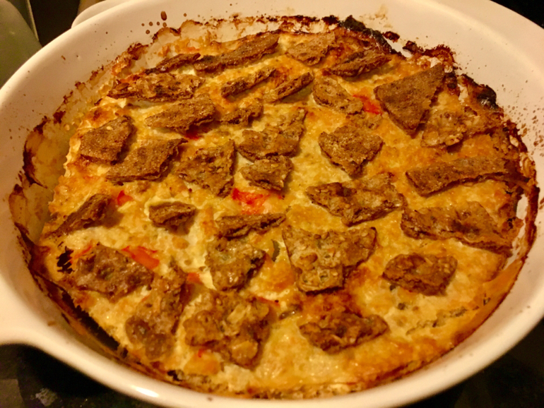 Сверху , для хрустящей корочки, выложить хлебцы перемешанные со сливками и белым перцем (опционально) .