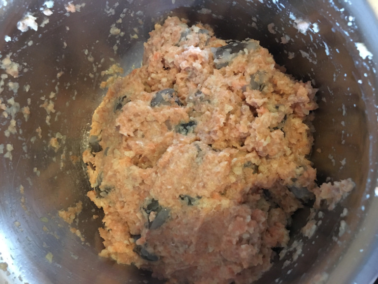 Перемешать. Выложить в смазанную оливковым маслом форму.