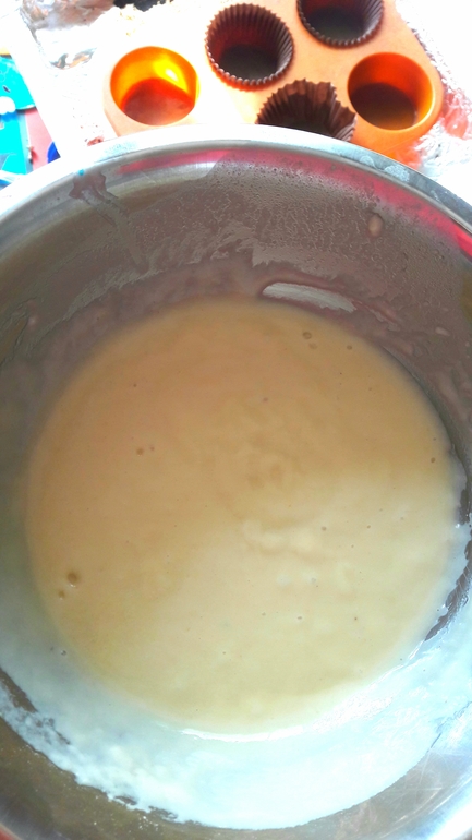 В другой - 2ст.л.растительного масла без запаха (один раз готовила у подруги, у нее раф.масло закончилось, налили просто оливкого - не стоит;))) и 150мл горячей воды.