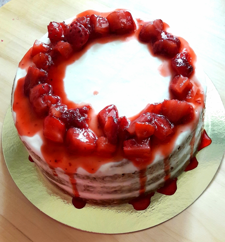 Сверху нанесли оставшийся крем. Торт убираем в холод.![]()