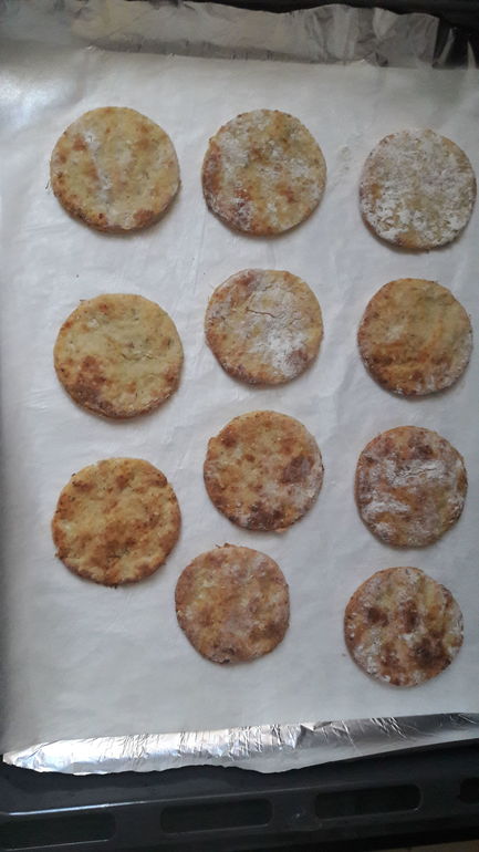 Намесили, намешали. Раскатали, вырезали и на пергаменте испекли. Выпекать при 180-200 около 10 минут.