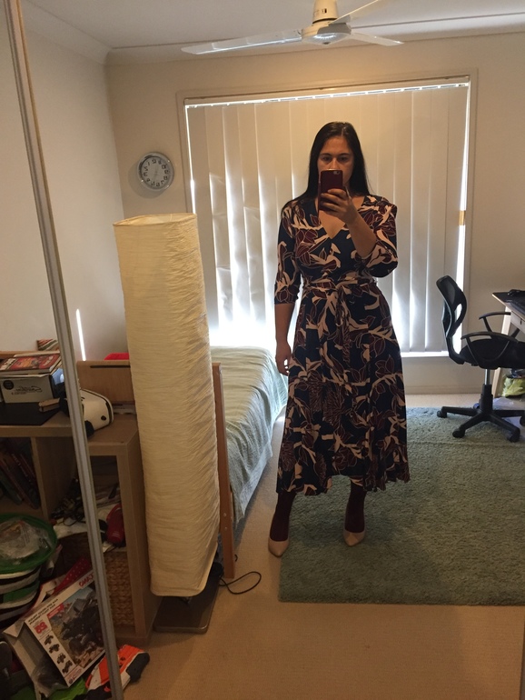 Зеленый мне не мал даже свободен везде просто я сильно пояс утянула. Ну и пуговку надо перешить верхнюю.