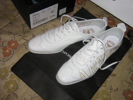 Короче, в этот раз я влюбилась в белые низкие туфли Армани в спортивном стиле, специально же пришла без денег! Думает помогло? Нихрена. Попросила попросила отложить, а сама помчалась потрошить бюджет:)