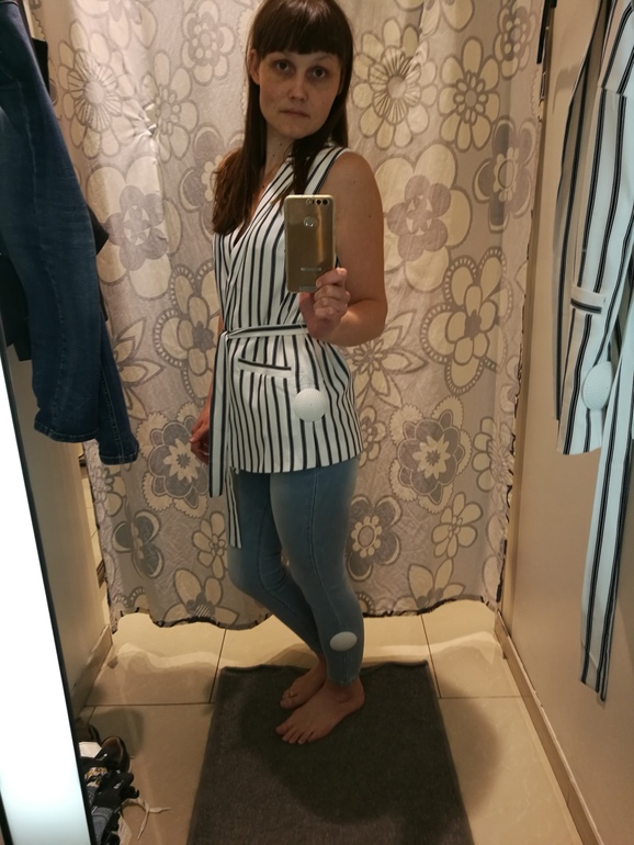 Вчера покупала джинсы и заодно примерила жакет/ жилет. В целом общий вид мне понравился. Вариантов в голове сложилось много. С брюками, юбками.